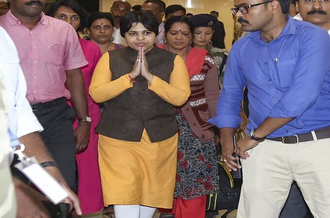 Kochi: Social activist Trupti Desai, who vowed to offer prayers at the hill shrine, leaves Nedumbassery Airport after being held up inside the airport for over seven hours, in Kochi, Friday, Nov. 16, 2018. (PTI Photo) (PTI11_16_2018_000140B)