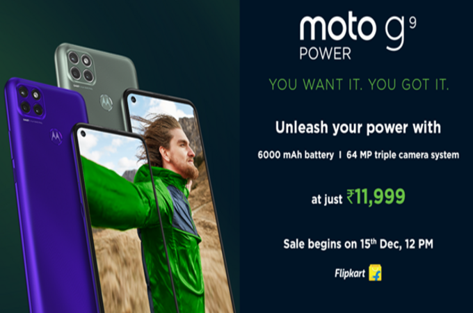 moto g9 power will be available in two colour variants, the vivid Electric Violet and the sophisticated Metallic Sage. The phone will go on sale starting 15th December, 12 noon onwards, exclusively on Flipkart