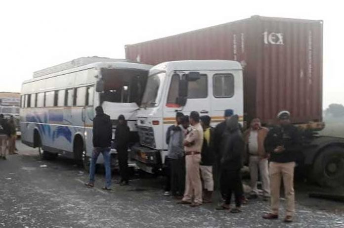 नागपूर – नागपूर मौदा मार्गावर शनिवारी सकाळी रस्त्यावर उभ्या असलेल्या कंटेनरला भरधाव ट्रॅव्हल बसने धडक दिली. या अपघातात बसमधील चार प्रवाशांचा मृत्यू झाल्याची माहिती आहे. तर 12 जण जखमी झाले आहेत. जखमींवर नागपुरातील रुग्णालयात उपचार सुरू आहेत. मृतांमध्ये 2 महिला आणि दोन पुरुषांचा समावेश आहे. या बसमध्ये 30 प्रवासी होते. लग्नावरून परतत असताना हा अपघात झाला.