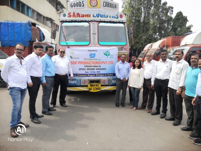 Nagpur – The first consignment of Nagpur oranges was flagged off to Dubai on 13th February 2020 from Vashi, Navi Mumbai. Total 1500 crates were loaded in the refrigerated container from Vanguard Health Care(VHT) facility. Nagpur mandarin in one of the best mandarins in the world. Production of this fruit crop in the central and western part of India is increasing every year. Mrig crop (monsoon blossom), which matures in February – March, has great potential for export since arrivals of mandarin fruit in the international market are less during this period. According to Maharashtra State Agriculture Department 40 lakh hectare. the land is under orange cultivation in Nagpur District and major orange growing pockets are Warud, Katol, Saoner, Kalameshwar and Narkhed in Nagpur and Amravati districts. In the whole region, only one variety of Nagpur Mandarin is grown.