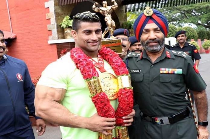 बंगळुरू – भारतीय लष्करातील हवालदार अनुज कुमार तेलियान यांनी 11 व्या वर्ल्ड बॉडी बिल्डिंग चॅम्पियनशिप 2019 मध्ये गोल्ड मेडल मिळवले आहे. बंगळुरूचे असलेले अनुज कुमार यांचे मद्रास इंजीनिअर्स ग्रुपच्या वतीने जंगी स्वागत करण्यात आले. अनुज यांनी वर्ल्ड बॉडी बिल्डिंग चॅम्पियनशिपच्या 100+ किलो वजनी गटात सोनेरी कामगिरी केली आहे. अनुज कुमार भारतीय लष्करात मद्रास इंजीनिअर ग्रुपचे सदस्य आहेत.