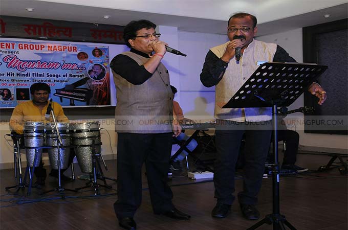नागपुर : भले ही शहरवासी बारिश की राह देख रहे हैं, लेकिन गायक कलाकारों ने गीतों की बारिश कर कार्यक्रम में समां बांध दिया। वी फाइव एंटरटेनमेंट की ओर से “बरसात के मौसम में” हिन्दी फिल्मी गीतों का कार्यक्रम मधुरम हॉल मोरभवन सीताबर्डी में आयोजित किया गया। कार्यक्रम की संकल्पना अनिल पिल्ले व नितीन झाडे की थी। विजय मधुमटके के बहारदार संचालन ने कार्यक्रम की शोभा बढ़ाई। संगीत संंयोजन मंगेश पटले ने किया।