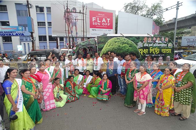 नागपुर : विदर्भ में गांव-गांव तक पौधारोपण के लिए जागरूकता फैलाने 23 जून रविवार को वर्धा के आंजी से शुरू हुई वृक्ष दिंडी शुक्रवार 28 जून को नागपुर पहुंची। विधायक अनिल सोले के ग्रीन अर्थ आर्गनाइजेशन की ओर से आयोजित दिंडी का शुभारंभ वन व वित्त मंत्री सुधीर मुनगंटीवार ने किया था।
