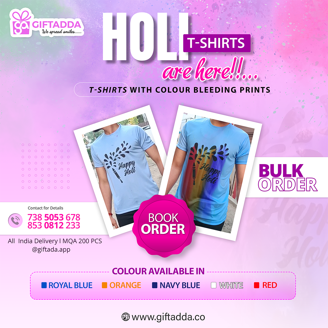 Holi T-Shirt With Colour Bleeding Prints- Giftadda(1) (1)